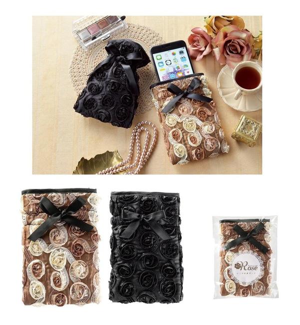 - ローズ 巾着ポーチ