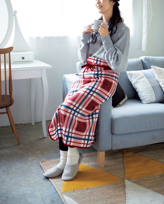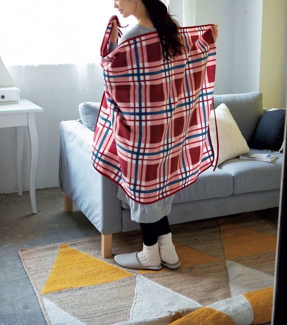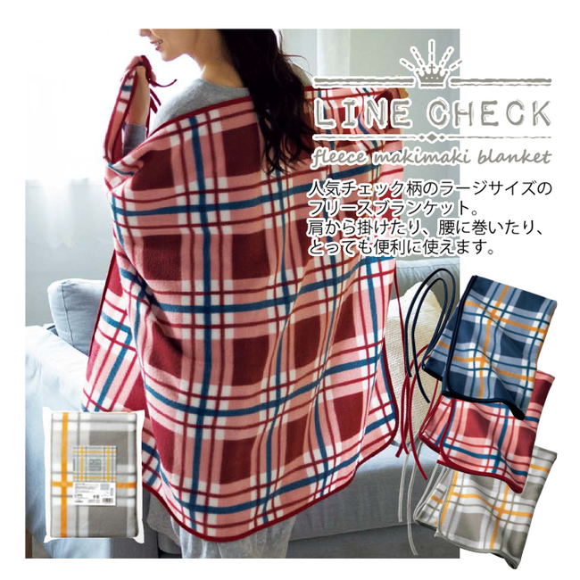 - ラインチェック フリースまきまきブランケット