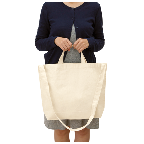 - 厚手コットンWスタイルバッグ ナチュラル