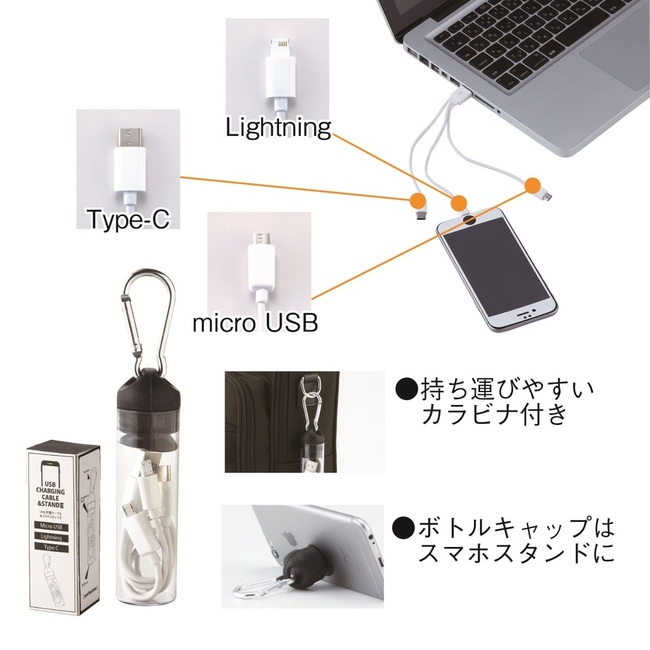 - ボトル入りUSBケース入りUSB充電ケーブルⅡ