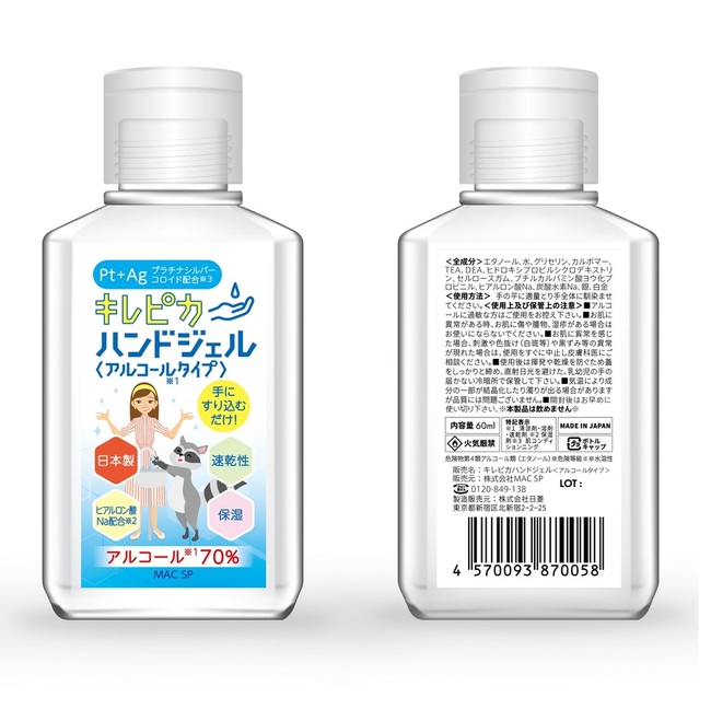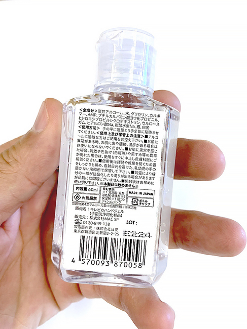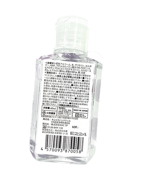 - 日本製 アルコール70%配合キレピカハンドジェル60ml
